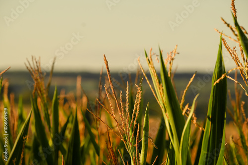 Fototapeta - Ekologiczna uprawa kukurydzy, rośliny ma polu z bliska