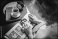 Fototapeta - an elderly woman looks at your picture in the album made many years ago