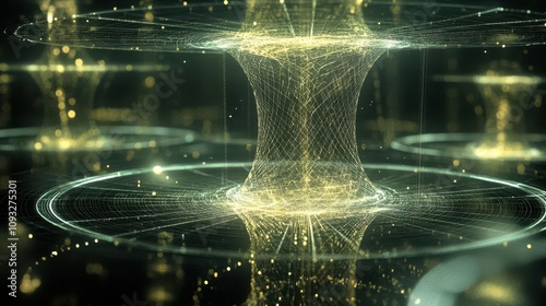 Fototapeta - A conceptual visualization of quantum gates, symbolized by complex transformations in radiant quantum fields
