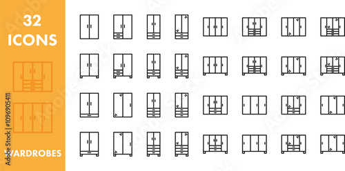 Fototapeta - Zestaw ikon. Różne rodzaje szaf.