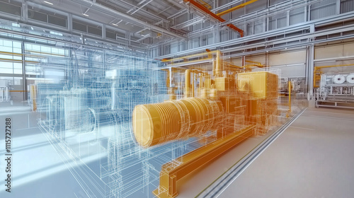 Fototapeta - Technologia cyfrowego bliźniaka w produkcji umożliwia tworzenie dokładnych wirtualnych kopii maszyn, napędzając postęp przemysłowy.