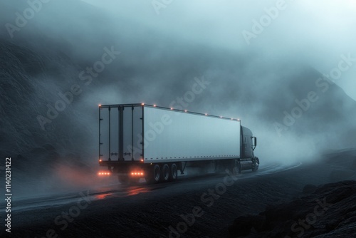 Misty mountain pass adventure semi truck navigates foggy terrain scenic road atmospheric view transport journey