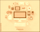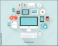 >Naklejka na meble>Content concept monitor with keyboard, documents and devices in flat design style. Infographics and multimedia icons. Vector illustration.