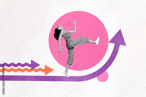 Fototapeta - Creative sketch collage of excited girl step arrow direction pointer success development concept career promotion chance