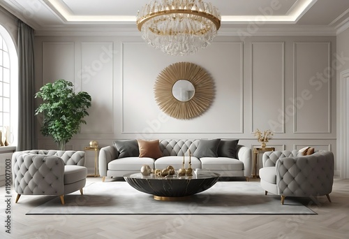 Elegant Living Room Decor With Modern Furniture And Chandelier