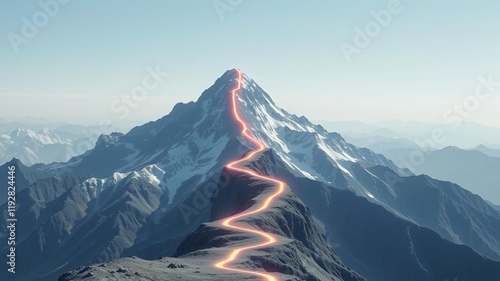 Fototapeta - Pathway leading up a mountain peak symbolizing success and growth mindset, mountain peak, route, goal