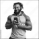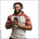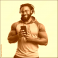 Man in gym clothes holding his phone and smiling after workout isolated on transparent background