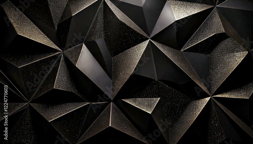 Fototapeta - Abstrakcyjne, czarne tło 3D z trójkątnymi figurami geometrycznymi