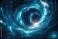 Abstract representation of a wormhole warping space, creating a tunnel of swirling, luminous energy.