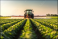 Tractor sprays pesticides in a soybean field during spring cultivation