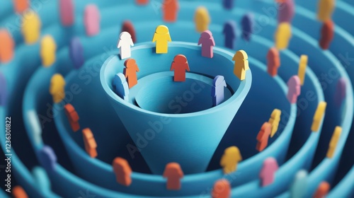 Fototapeta - Abstract visualization of individuals moving through a funnel process of selection