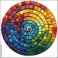 Colorful spiral mosaic design featuring vibrant multi hued tiles arranged in swirling pattern, creating captivating visual effect