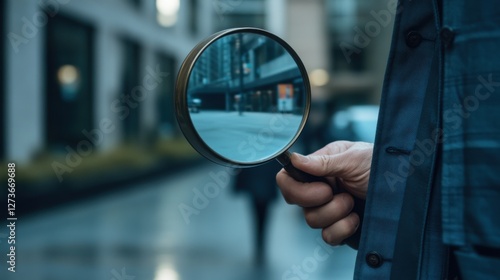 Fototapeta - A detective investigating a suspicious object left in a public space. Featuring curiosity and investigation