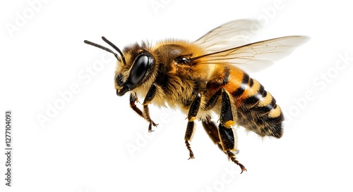 una abeja impresionante vuela, aislada sobre fondo transparente, macro, polinizador increíble, IA generativa