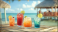 Fototapeta - Bartender mezclando cócteles en una playa tropical durante una tarde soleada