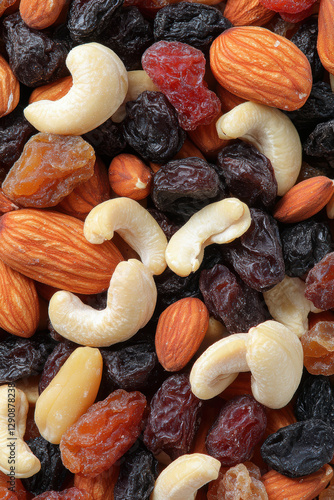 Fototapeta - Mélange coloré de fruits secs et noix formant un trail mix appétissant