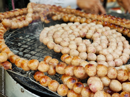 >Naklejka na meble>Close-up sausage grilled (Sai Krok Isan) Thai traditional style, Sai krok isan, pork and rice, thai street food market, Street food in Thailand.