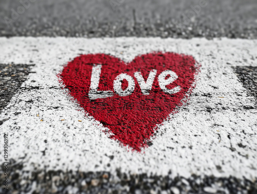 Fototapeta - Napis LOVE w czerwonym sercu na tapetę