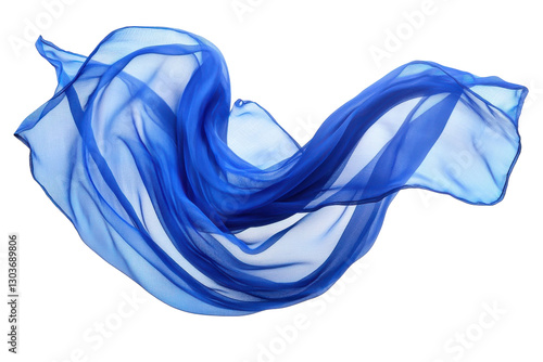 Elegant blue silk fabric flowing gracefully through the air in a bright space during daylight isolated on transparent background
