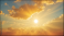 Orange sky featuring the sun and clouds in hot summer weather.
