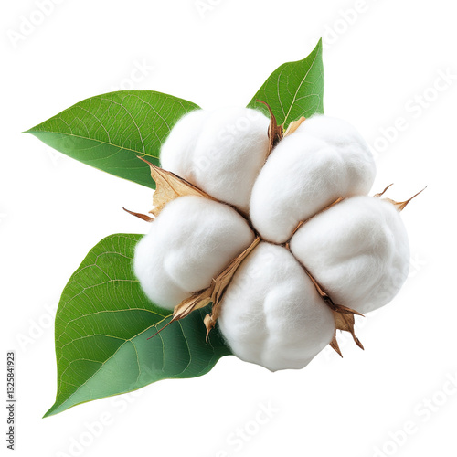 Fototapeta - Close up of a cotton boll with green leaf isolated on white background.