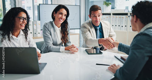 >Naklejka na meble>Handshake, finance or business people in accounting meeting for planning, charts or capital growth. Partnership, deal agreement or financial advisor shaking hands with investor, graphs or directors