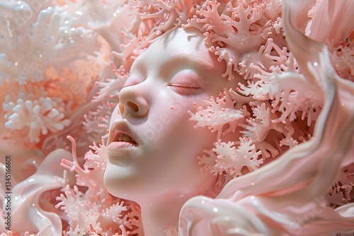 Fantasy Portrait of a Woman with Coral Decorations and Closed Eyes - Dreamy Art