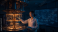 Scientist in laboratory working with advanced quantum computer and complex mathematics on screen