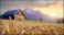 >Naklejka na meble>Picturesque old barn nestled in a lush rolling countryside landscape with a majestic mountain peak in the background during a beautiful autumn sunset Peaceful tranquil and serene rural scene