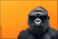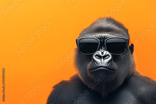 Fototapeta - Cool gorilla wearing sunglasses against bright orange background