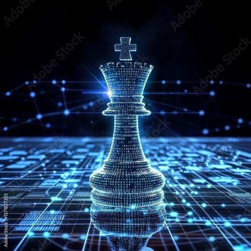 Fototapeta - Symbol of business-driven decision-making illustrated with a chess piece and binary elements.