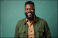 Fototapeta - Portrait of smiling African American man in green jacket. Happy male in stylish outfit, brown shirt. Black guy portrait looks at camera. Professional, successful, confident, attractive.