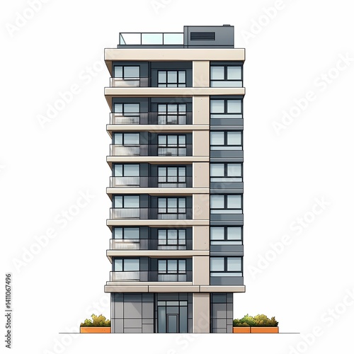 Modern Residential Skyscraper. High-Rise Urban Living Space with Contemporary Architecture and Stylish Facade