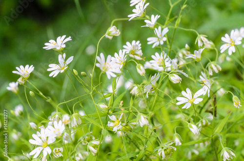 Fototapeta - Forest plant stellate flowers in spring with white flowers