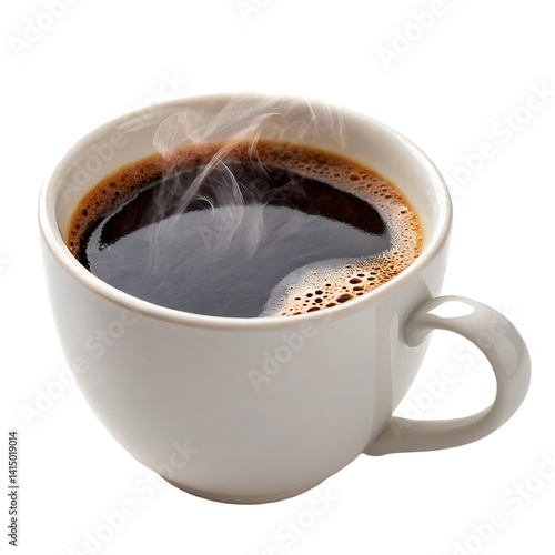 Fototapeta - Cup of coffee with steam isolated on transparent background for morning drink visuals