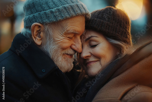 Elderly couple in love. Senior husband and wife hugging and bonding with true emotions