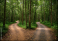 >Naklejka na meble>Two winding trails split in a peaceful forest, surrounded by tall trees and rich foliage. Sunlight filters through the leaves, creating a tranquil atmosphere for wanderers