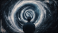 Fototapeta - Man stands before swirling vortex of light and dark in abstract space.