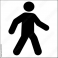 Simple black pictogram representing a pedestrian figure walking with a distinctive style