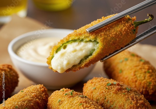 Fototapeta - Crispy jalapeno poppers with melted cheese dip