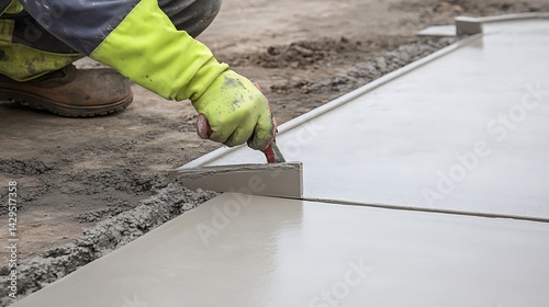Fototapeta - Construction Worker Smoothing Concrete Floor