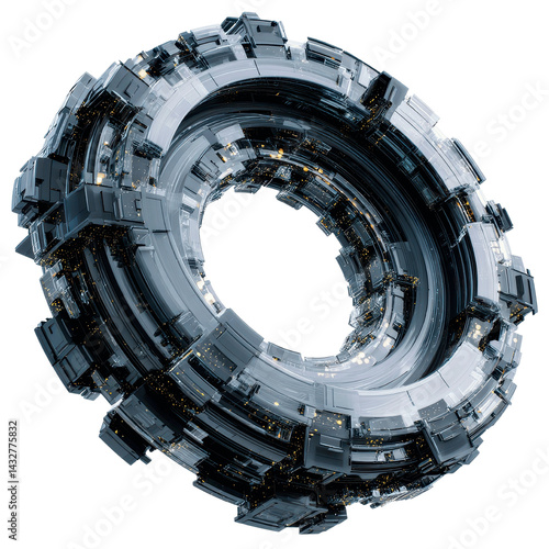 Futuristic Technological Ring Structure Abstract 3D Render of a Complex Machine