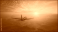 Fototapeta - A plane flying above a desert landscape at sunrise.