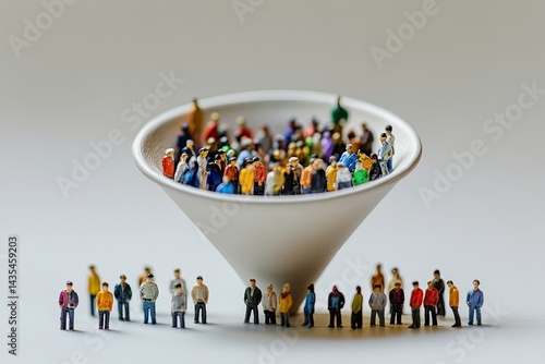 Fototapeta - Miniature figures illustrating a sales funnel concept