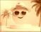 Fototapeta - Wakacyjne tło produktowe z podium, plażą, palmami i słońcem w kapeluszu i okularach przeciwsłonecznych
