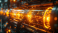 Close-up of a glowing high-tech machine quantum computer with illuminated circuits and futuristic components