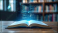 Open book with glowing code projected above it, representing digital learning and technology in an academic setting