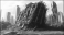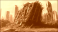 Abandoned building overgrown with vegetation in a futuristic cityscape.