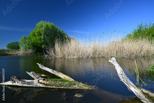 Wisła. Brzeg rzeki z malowniczymi wysepkami okolice Bydgoszczy. Poland