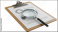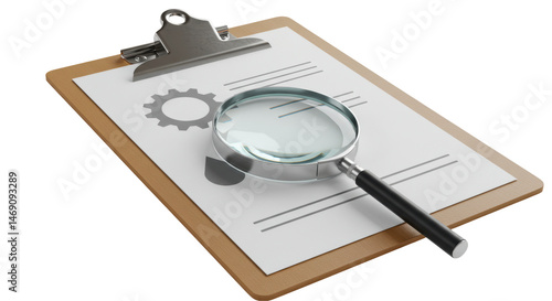 Fototapeta - Isolated Magnifying Glass on Clipboard Examining Document
